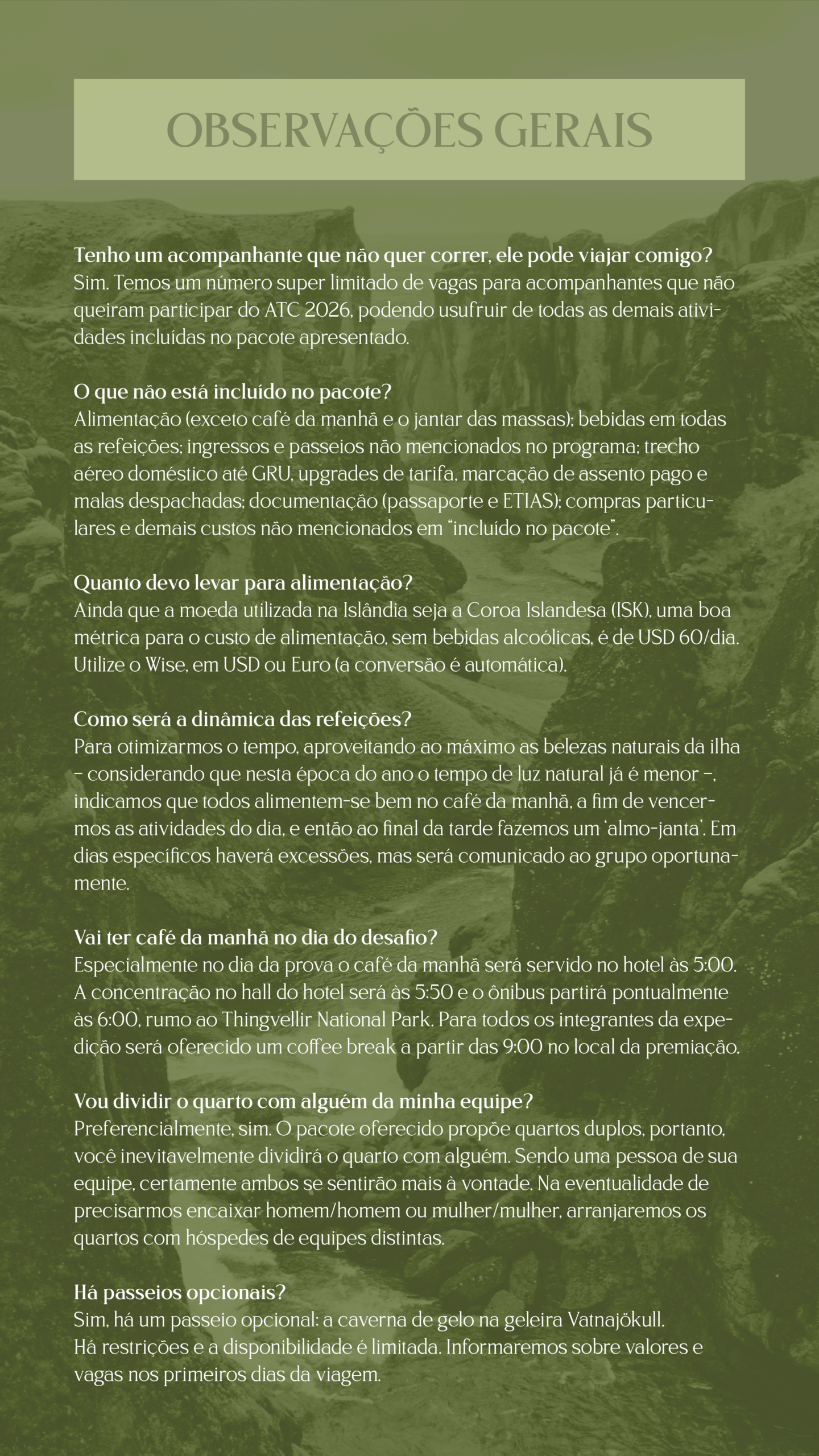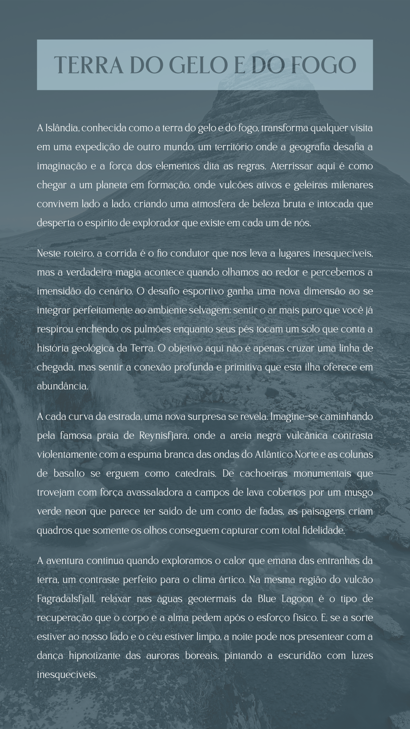 Mais do que turismo, unimos aventura e esporte em expedições que envolvem trail run, ciclismo e natação em águas abertas. A cada edição, apresentamos um novo destino exótico e um desafio inédito, do gelo do Ártico à imensidão da Antártida, entregando uma experiência que vai muito além da prova e que, invariavelmente, nos transforma.